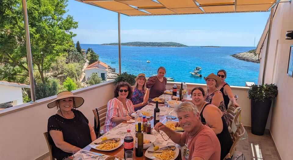 Milna on Vis Island is a piece of paradise where you'll enjoy lunch at our exclusive private seaside house—off-limits to other companies. Choose from grilled white fish, meat, vegetarian or vegan dishes, plus dessert and drinks. Afterward, relax with a swim at the nearby sandy beach and savor your coffee and ice cream. This is what sets us apart from all other blue cave tours from Split.
